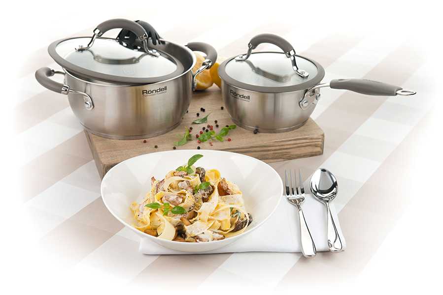 Rondell – посуда данного бренда часто применяется в ресторанах из-за высокого качества и удобства использования. Продукция фирмы успешно протестирована и рекомендована к эксплуатации Национальной Гильдией шеф-поваров. В ассортименте торговой марки есть как классические серебристые кастрюли из стали, так и красные, черные, бирюзовые, оранжевые изделия.