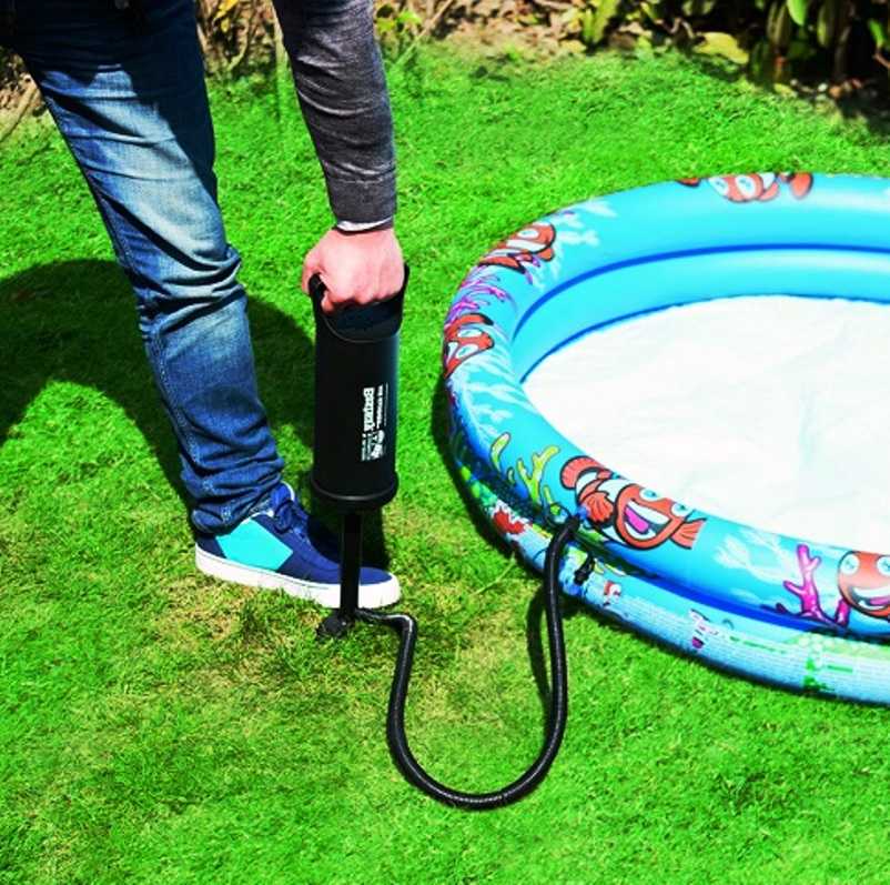 Обычно накачивается воздухом только одно кольцо – верхнее, которое опоясывает конструкцию по диаметру. Если бассейн обладает приличными размерами, то подобных колец может быть несколько. Для маленького ребенка выбирают бассейн с надувным дном, чтобы о твердую поверхность под самим бассейном малыш не получил травму.