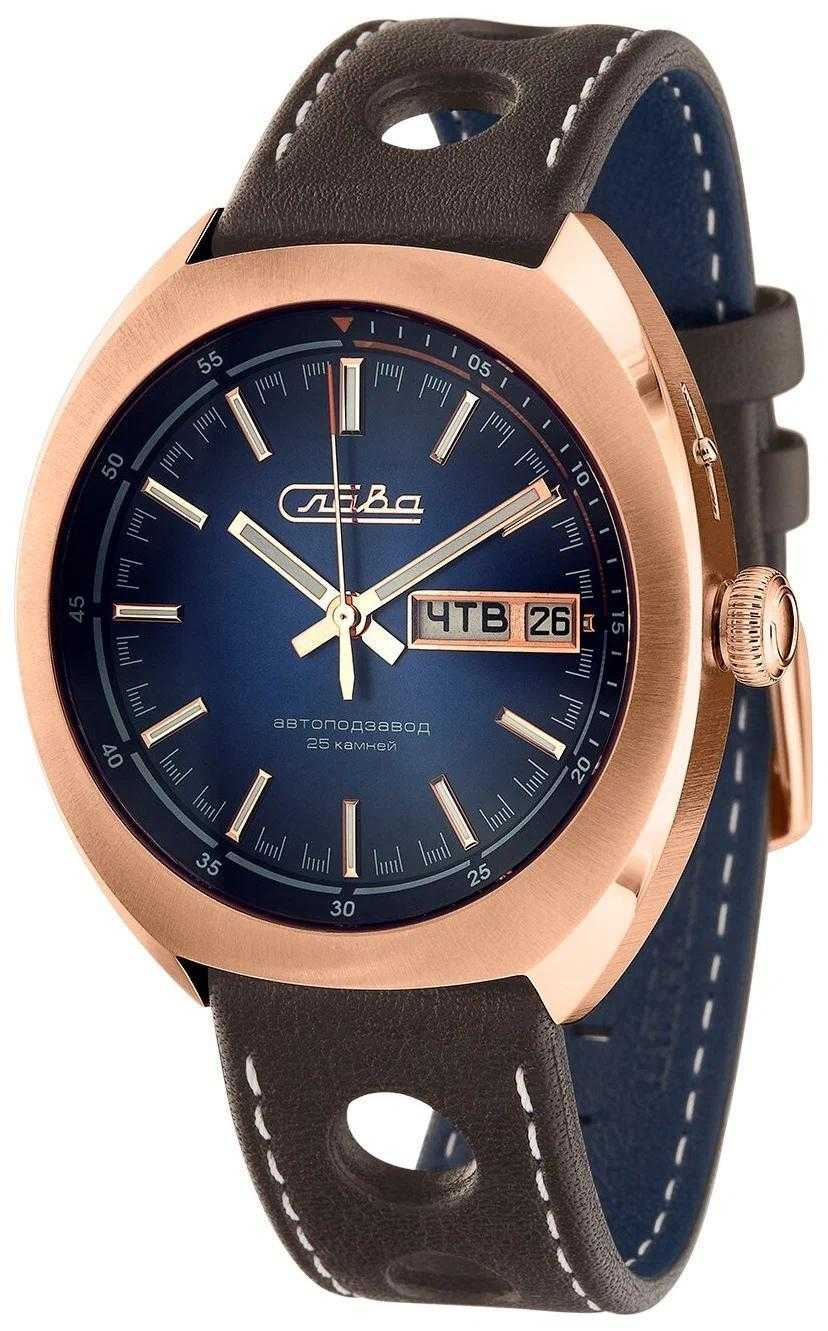 Следующая модель рейтинга — коллекционные классические механические часы, которые подойдут серьёзным мужчинам с творческой жилкой, тяготеющим к уникальным предметам. Дизайн напоминает образцы 60-х г. Цвет циферблата — тёмно-синий, с узором золотого оттенка по окружности. Модель имеет класс водонепроницаемости WR100 (10 атм). Длительность работы после полного завода составляет всего 30 ч.