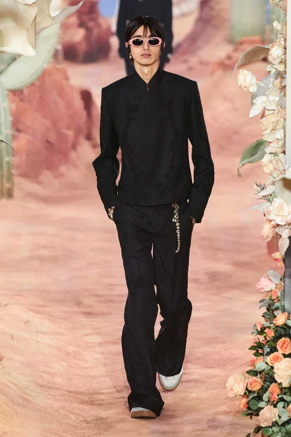 Если же черный цвет – не совсем ваша история, и душа просит красок, то рекомендуем присмотреться к цветочному принту. В сезоне осень-зима 2022/2023 он буквально оккупировал мужские коллекции и поселился на куртках, брюках, жакетах. В ход шли как реалистичные изображения бутонов на куртках Louis Vuitton, так и минималистичные цветы в виде детских рисунков на показе Kenzo. Боитесь слишком уходить в сторону гендерно-нейтральной моды? Тогда попробуйте для начала выбрать рубашку с флоральными мотивами, и вы увидите, как классно она «оживит» ваши повседневные образы!