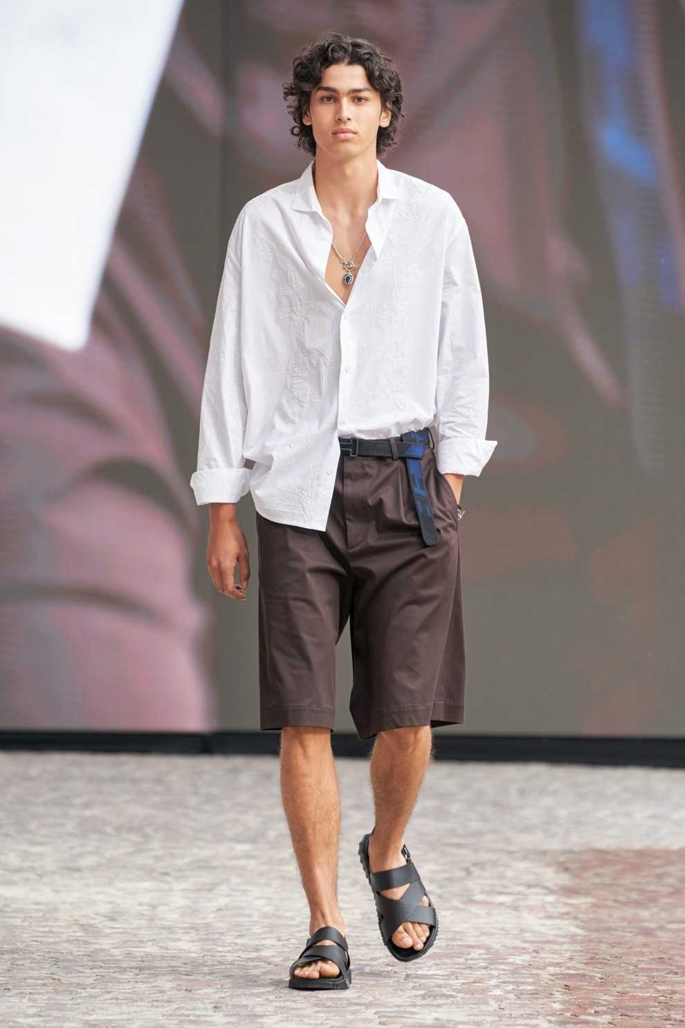 Мы уже упомянули о том, что 50-е снова вернулись на fashion-рынок. Ретро-стиль нашел свое воплощение в рубашках, создав легкий модный мужской лук весна-лето 2022 2023. Не стремитесь обтянуть тело, наоборот, отдайте предпочтение свободному крою или выбирайте рубашки на размер больше. Расслабленный и летящий образ прекрасно подходит для теплой и жаркой погоды. Скорректировать силуэт можно с помощью колор-гаммы. В тренде песочные оттенки и пастельные цвета: нежно-голубой и персиковый.