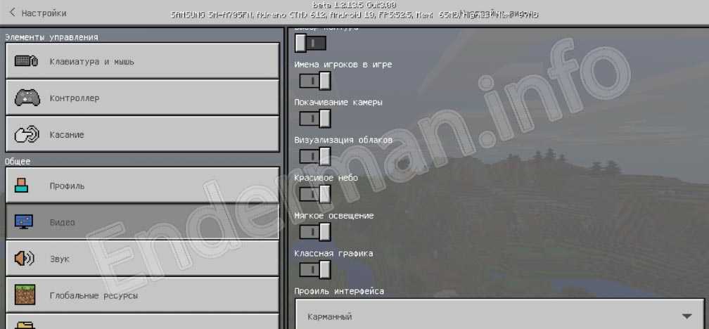 А теперь поговорим о втором моменте, который мы анонсировали в начале этой статьи. Самая старая версия Minecraft PE это хорошо, она будет работать намного быстрее даже на слабых телефонах. Но если случай совсем печальный и вы все равно наблюдаете просадку FPS, нужно попробовать поиграть с настройками. Делается это так: