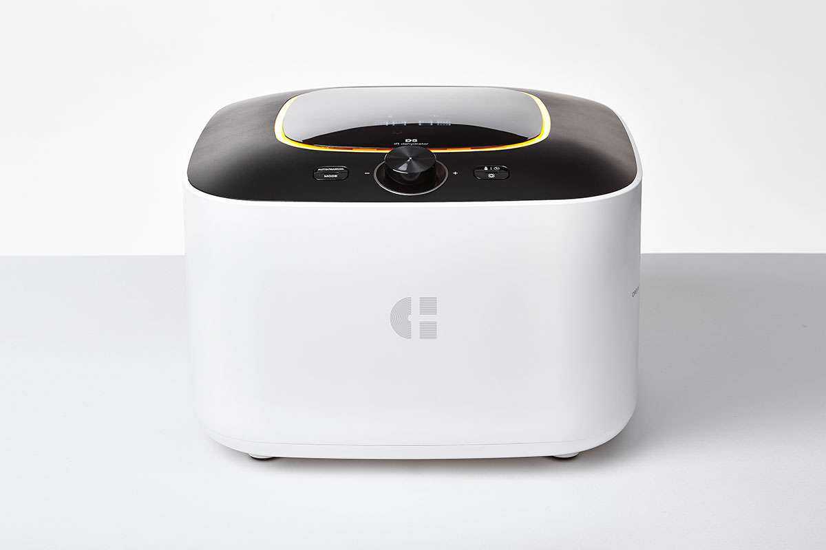 Вертикальная сушилка с парой независимых камер, благодаря которым удается минимизировать риск смешивания запахов при готовке. Каждая половина вмещает по десять поддонов, корпус — пластиковый прозрачный. Встроенный фильтр защищает продукты от пыли, также прибор можно использовать как йогуртницу.