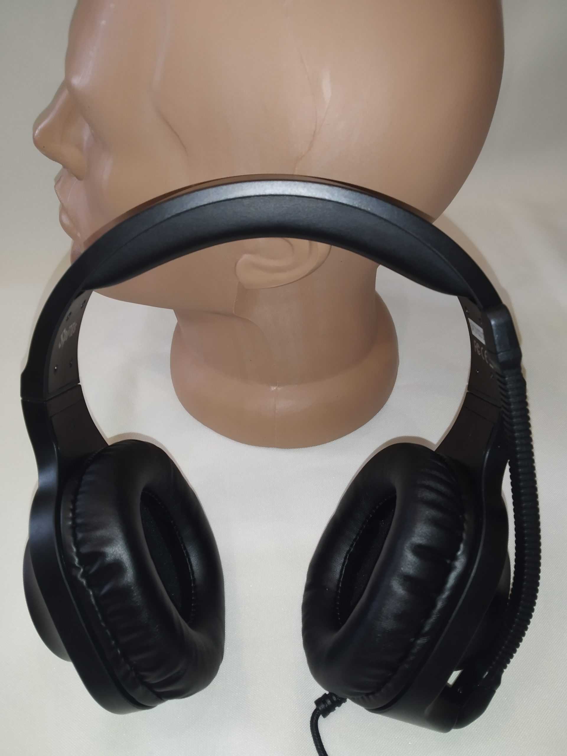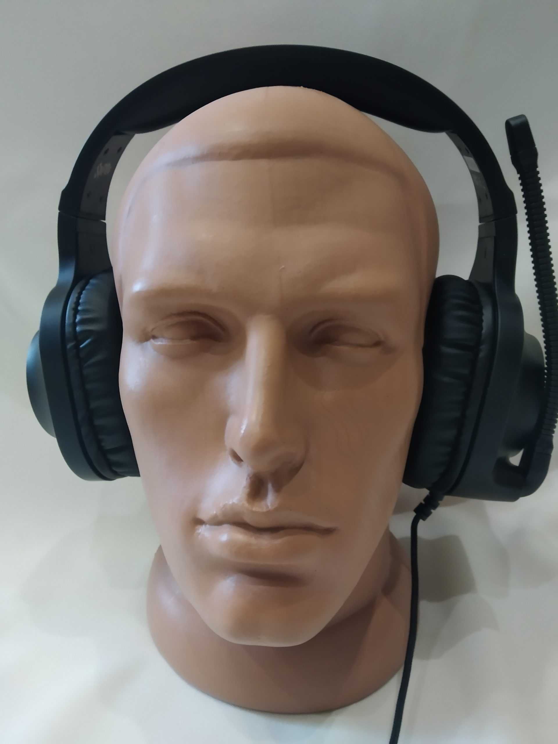 Есть еще вот какая особенность. Гарнитуру можно подключить как по 3.5 мм разъему, так и по USB. Для этого предусмотрели звуковую карту в пульте управления. Кстати, от типа подключения зависит качество работы микрофона. Какое-то одно нельзя назвать хорошим или плохим, поэтому каждому подойдет разное. Но к самому микрофону никаких претензий, т. к. он справляется со своей задачей на 5+. Его можно снять или установить так, как будет удобно. Как и в случае с прошлым участником, эти уши тоже имеют металлическую пластину в оголовье для повышения прочности.