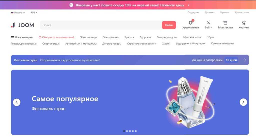 Популярный маркетплейс в первую очередь позиционируется как магазин одежды и обуви, но на нем также есть и другие товары (игрушки, посуда и т. д.). Здесь можно приобрести товары известных брендов. Каталог разбит на отдельные подразделы, облегчает поиск подробный интуитивно понятный фильтр. Есть возможность оплатить товар только после примерки, если он подойдет, или бесплатно отказаться от него.