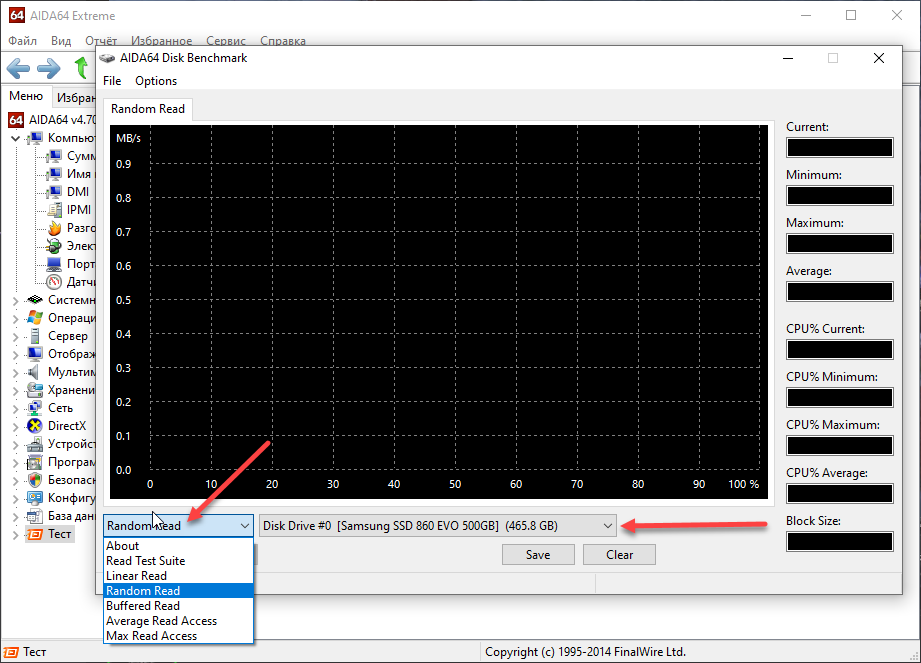 Та же проверка жестких дисков начинается с выбора режима (линейное и выборочное чтение, анализ максимальной скорости) и носителя, а заканчивается – кнопкой Start.