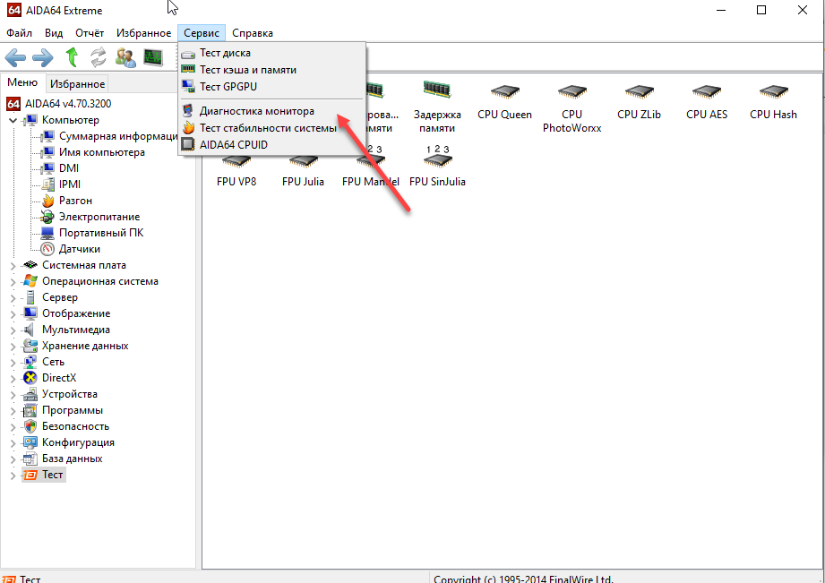 Следующей программой для тестирования видеокарты на неисправность будет Aida 64.