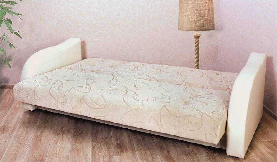 Для ежедневного сна он не подойдет из-за не очень надежного механизма, не предназначенного для больших нагрузок. Конструкция из лат или сеток с тонким матрасом выдвигается вперед от изголовья. Перед раскладыванием с нее необходимо снять все подушки, что также доставляет неудобства.