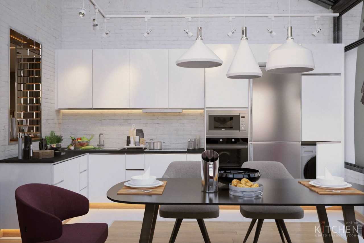 Хозяевам, размышляющим, как оформить обеденную зону на кухне, полезно обратить внимание на независимую подсветку. Лампа над столом не только зонирует помещение, но и делает его уютнее, а еду – аппетитнее (особенно, если выбрать лампу тёплого света). На выбор освещения влияет размер стола и его расположение; распространены следующие варианты: