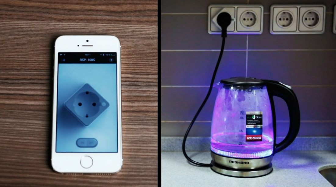 - Работа электроприборов может осуществляться по определенному режиму, который можно для них задать. Например, включение чайника за 5 минут до прихода домой.