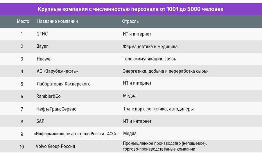 Крупные компании с численностью персонала от 1001 до 5000 человек