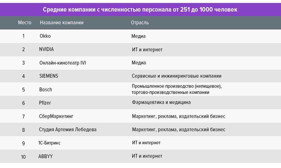 В десятке лучших работодателей из числа средних компаний тоже есть региональные представители бизнеса — это «1С-Битрикс» с головным офисом в Калининграде, занявшая 9-ю строчку.