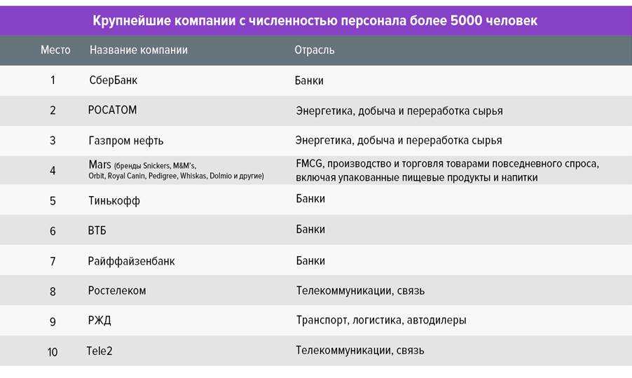 В тройке лидеров на протяжении последних лет закрепились «СберБанк», «РОСАТОМ» и «Газпром нефть», перехватывая друг у друга пальму первенства. Если в прошлом году первую строчку занял «РОСАТОМ», то в 2021-м — «СберБанк», который активно использует все возможности для привлечения и удержания персонала.
