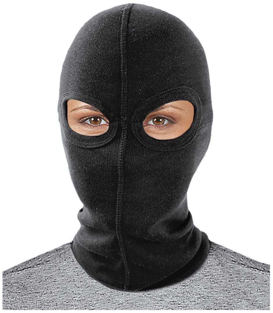 - Существуют балаклавы с двумя вырезами. Один находится на уровне глаз, другой открывает рот или нос. В зависимости от собственных предпочтений, такими моделями могут воспользоваться спортсмены, гонщики, мотоциклисты.