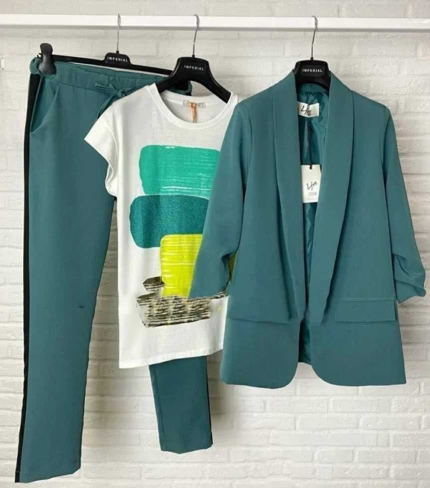 В теплое время года пригодятся хлопковые бриджи и туника, а осенью или зимой лучшим вариантом станет теплый трикотажный костюм с эластичными вставками на животе. Дома можно носить атласный комплект в пижамном стиле, украшенный кружевом и гипюром, а для прогулок пригодится эргономичная брючная двойка на основе бифлекса.