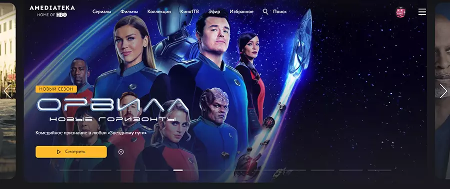 Стриминговый сервис фильмов и сериалов отличается обширной коллекцией зарубежных проектов. Амедиатека предлагает эксклюзивный контент канала HBO, который нельзя найти на других площадках. Например, «Гарри Поттер 20 лет спустя», «Темные начала», «Большая маленькая ложь» и другие.