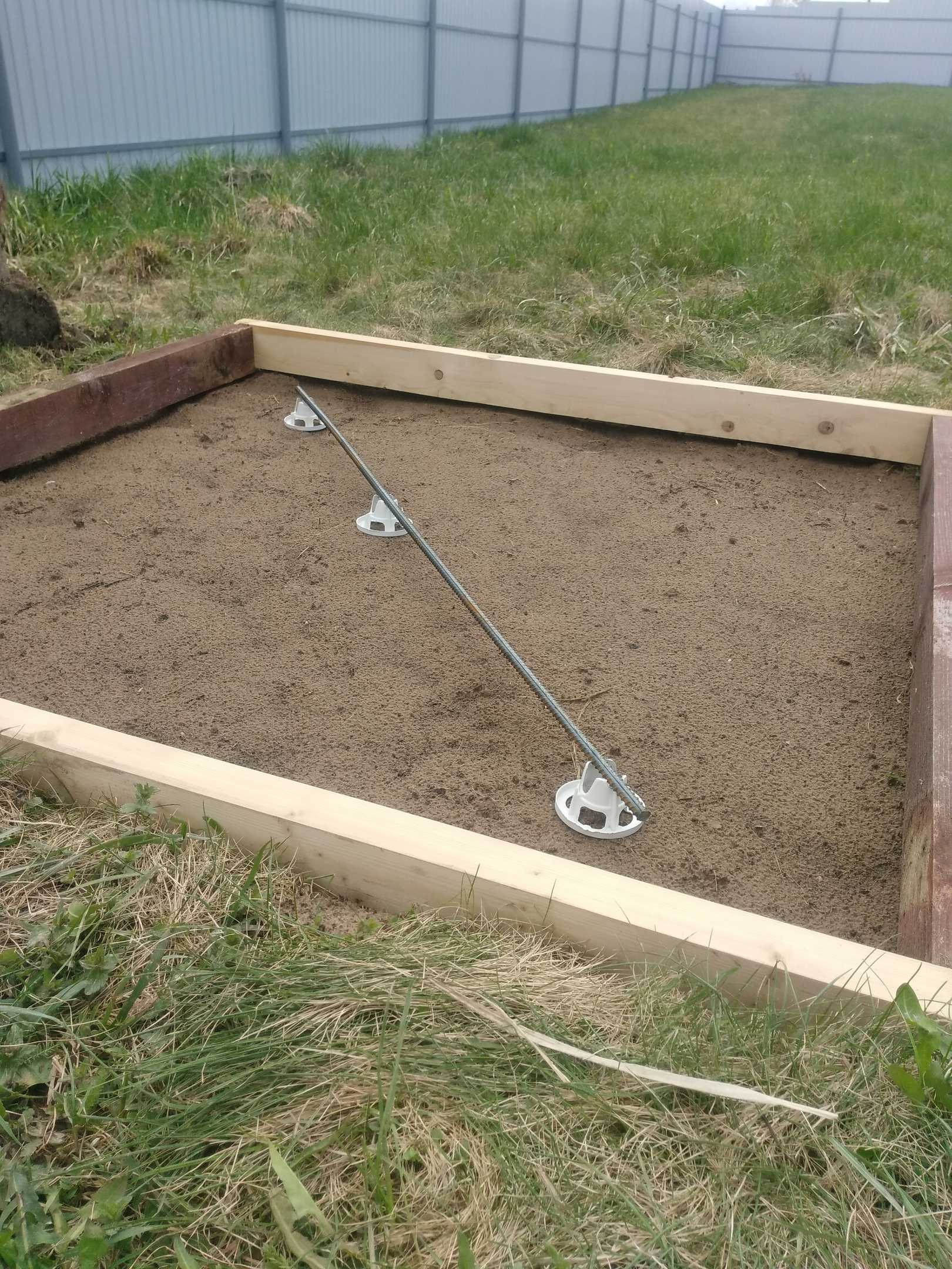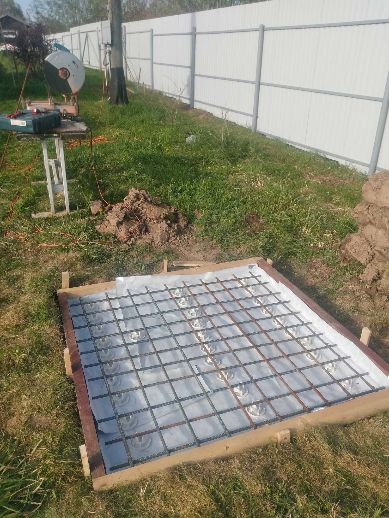 Площадку подготовили, забетонировали. Сделали дренаж за забор.