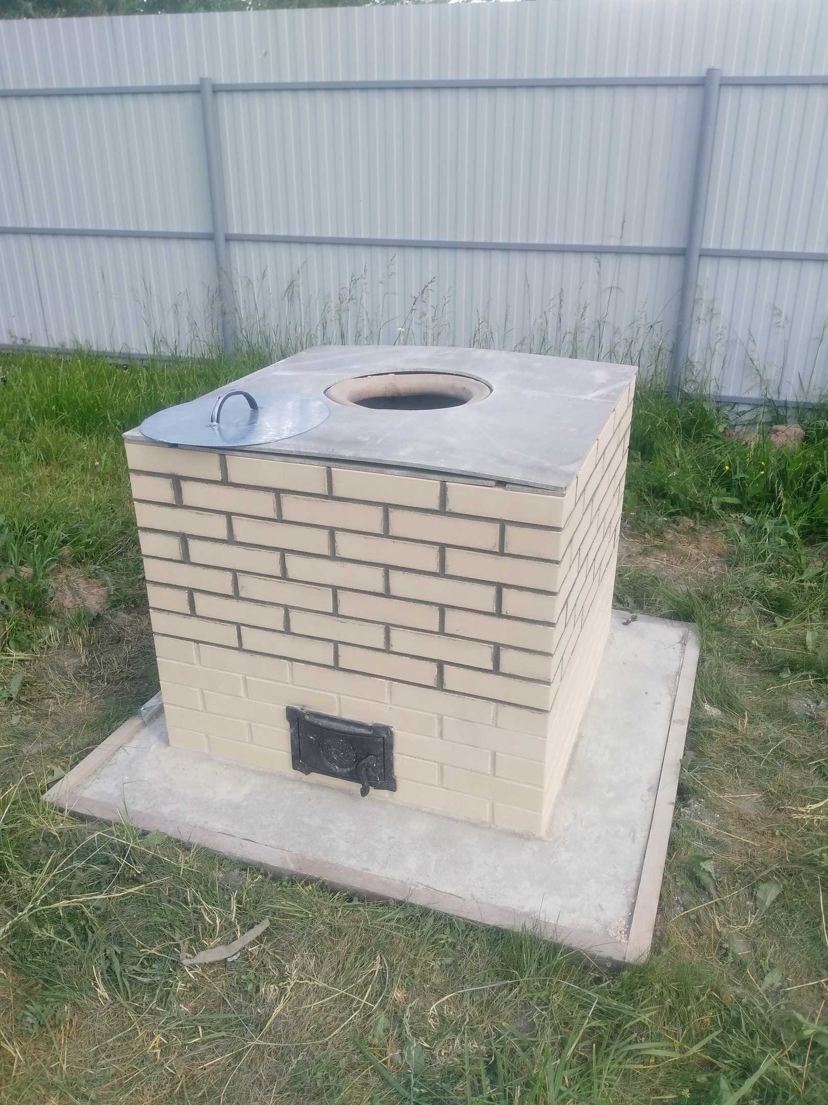 - Стационарный – больше подходит для профессионального пользования. Его выкладывают из кирпича и используют как обычную печь. В некоторых случаях перед кирпичной обкладкой устанавливают базовую чашу. Минусы – Высокая цена и отсутствие возможности переноса жаровни на другое место.