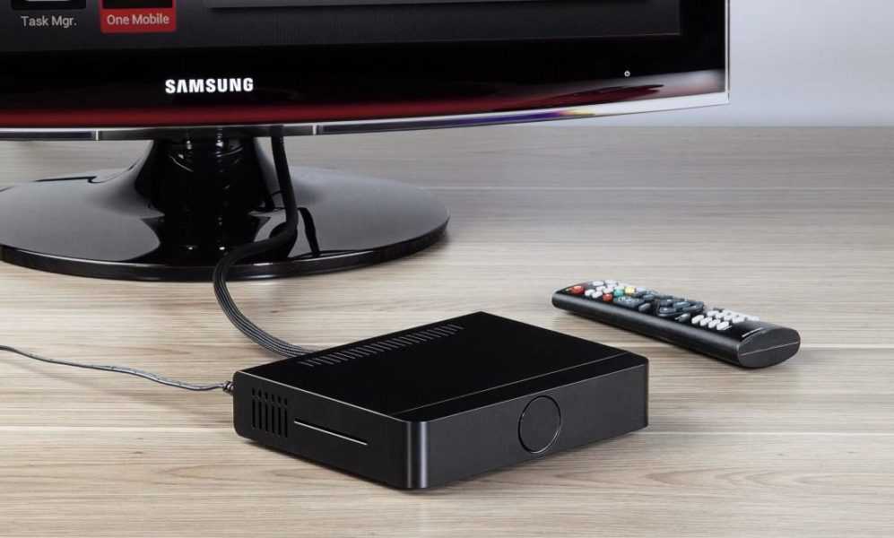 У приставки есть встроенный всеядный медиаплеер с поддержкой AC3, а также удобный пульт в комплекте. Основным недостатком модели является отсутствие HDMI кабеля в комплекте — придется докупать отдельно.