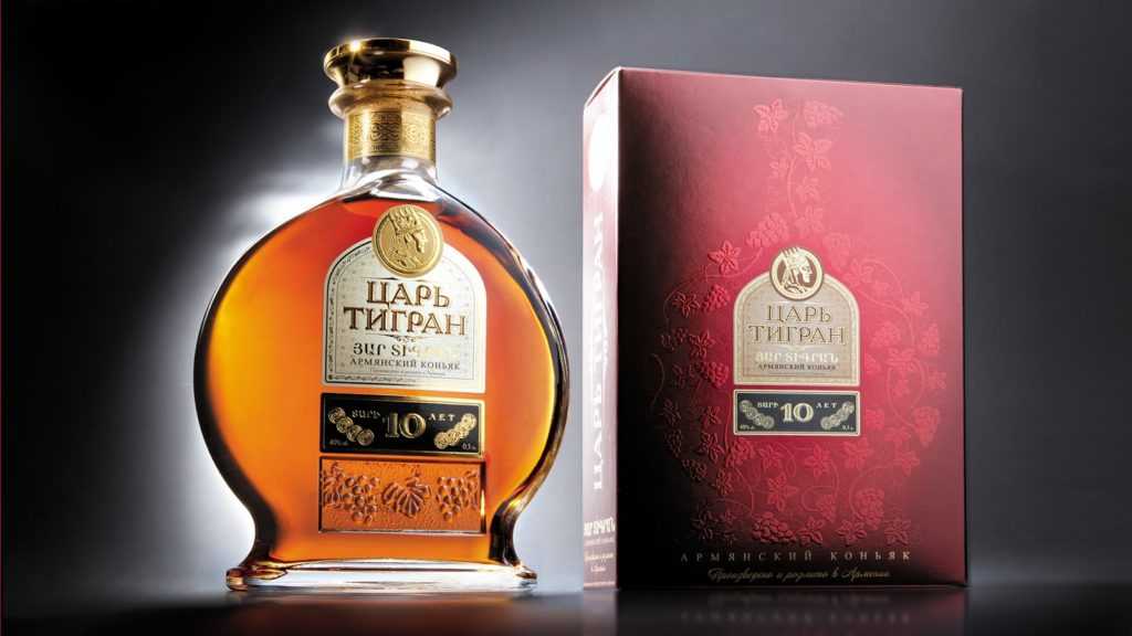 - «Царь Тигран» – один из лучших армянских коньяков. Выдержка составляет 10 лет, а цена за 0,7 л – 2345 рублей. Напиток имеет янтарный цвет, а также маслянистый вкус лесных ягод, ванили и орехов.