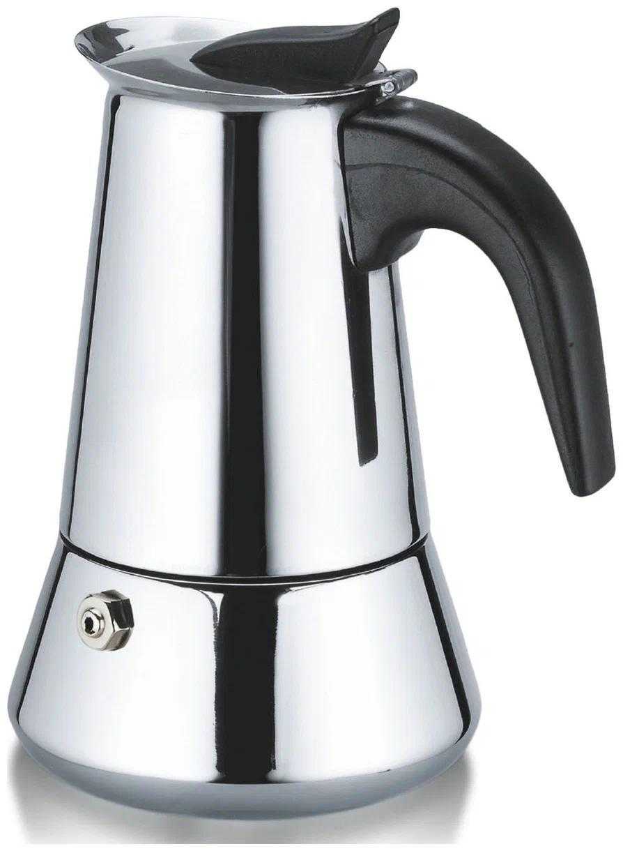 Самый дешевый в рейтинге вариант гейзерной кофеварки на газу, который легко найти во многих супермаркетах и магазинах электроники. Основной материал – нержавеющая сталь. Отличается большим объемом готового напитка, составляющим 450 мл. Так, можно угостить чашечкой кофе даже большую компанию. Для этого потребуется всего 10 минут.