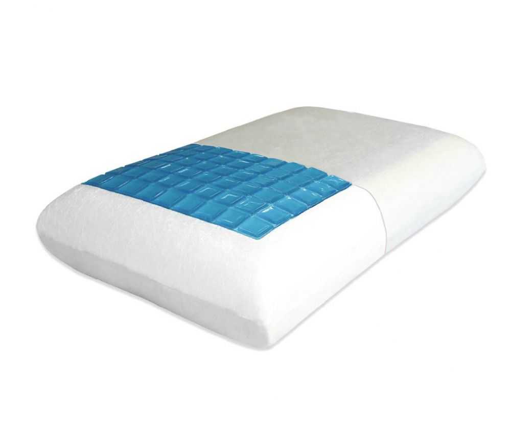 - Охлаждающий гель – наполнитель с охлаждающей субстанцией легко снимает боль и напряжение в шее. Наиболее популярны такие изделия в жаркую погоду, когда у человека повышается потоотделение. Подушка служит терморегулятором. Она облегчит состояние и поможет отлично расслабить мышцы спины.