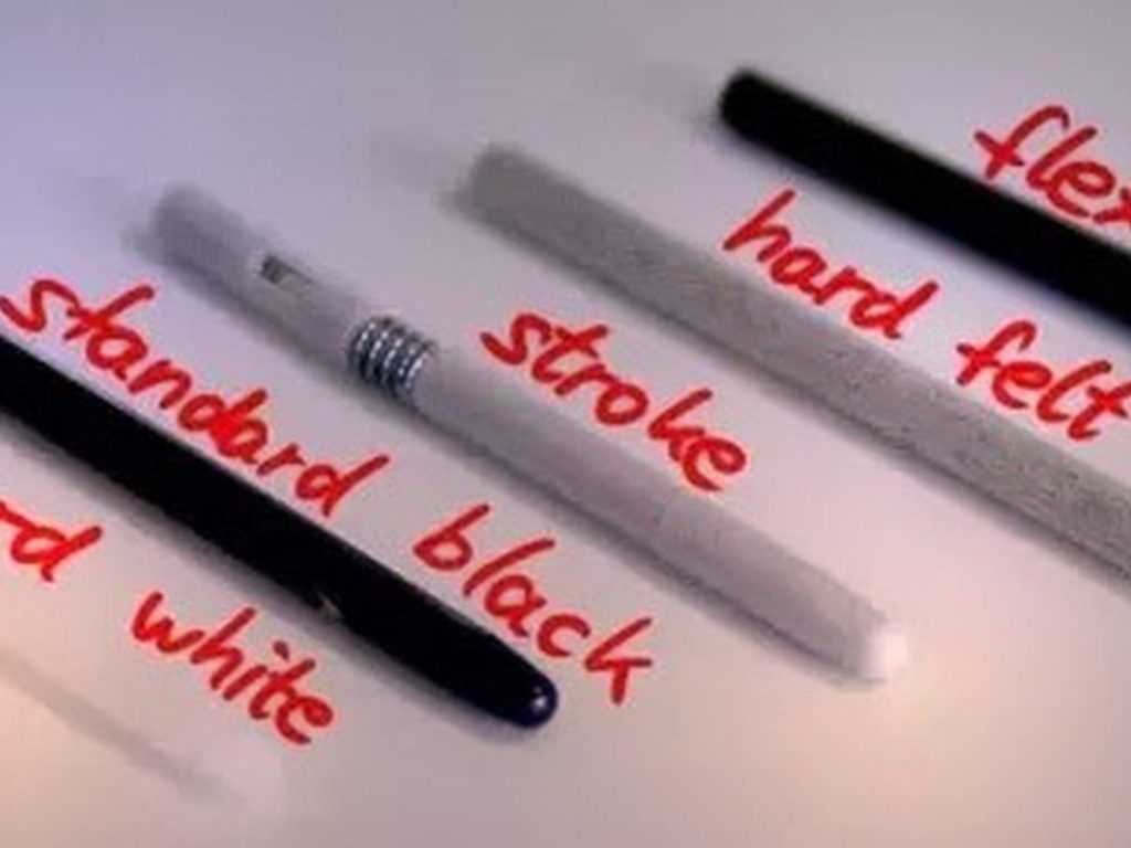 Процесс записи и рисования происходит с помощью пера, которое не требует подзарядки, его можно наклонять до 60 градусов, планшет по-прежнему будет его видеть. Это поможет придать линиям большую плавность, а пользователю поможет выбрать удобное расположение руки при рисовании так, чтобы процесс напоминал рисование на обычном альбомном листе при помощи ручки или карандаша.