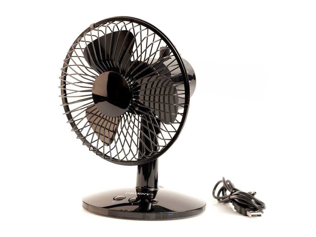 Не выбивается из этой картинки и настольный вентилятор, представленный в нашем обзоре. Он имеет надежную, прочную и довольно устойчивую конструкцию и небольшие габариты. Мощность прибора всего 2,5 Вт, а диаметр лопастного круга всего 10 см. Такой вентилятор можно запросто подключить прямо к ноутбуку или компьютеру, используя USB-порт, при этом радиус действия устройства достаточно велик. «головка» вентилятора умеет поворачиваться на 180 градусов по горизонтали.