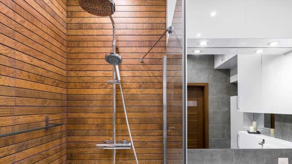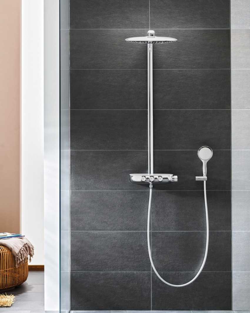 В первых двух случаях также стоит подумать о выборе настенной модели с регулируемой насадкой для тропического душа, которую можно отрегулировать по высоте стеклянной панели, чтобы предотвратить разбрызгивание воды.