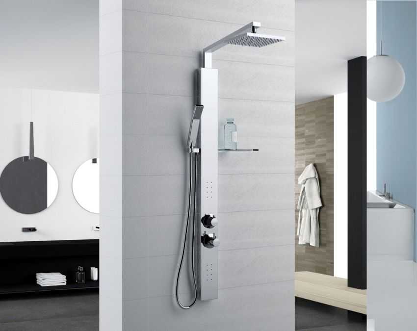 Стойки для душа являются универсальными установками и подходят как для душевой кабинки, так и для ванной. При приобретении продукции стоит внимательно отнестись к комплектации. Должен присутствовать обязательный минимальный набор в виде штанги, лейки и шланга. Если есть желание мыться более комфортно, выберите модель со смесителем и термостатом.