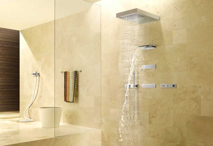 Бывают душевые стойки: настенные, напольные, встроенные или потолочные